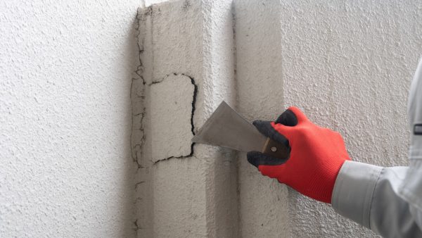 コンクリートやモルタルがひび割れている場合は、コーキング材を使用して隙間を埋めるか、フィラーを擦り込みます。