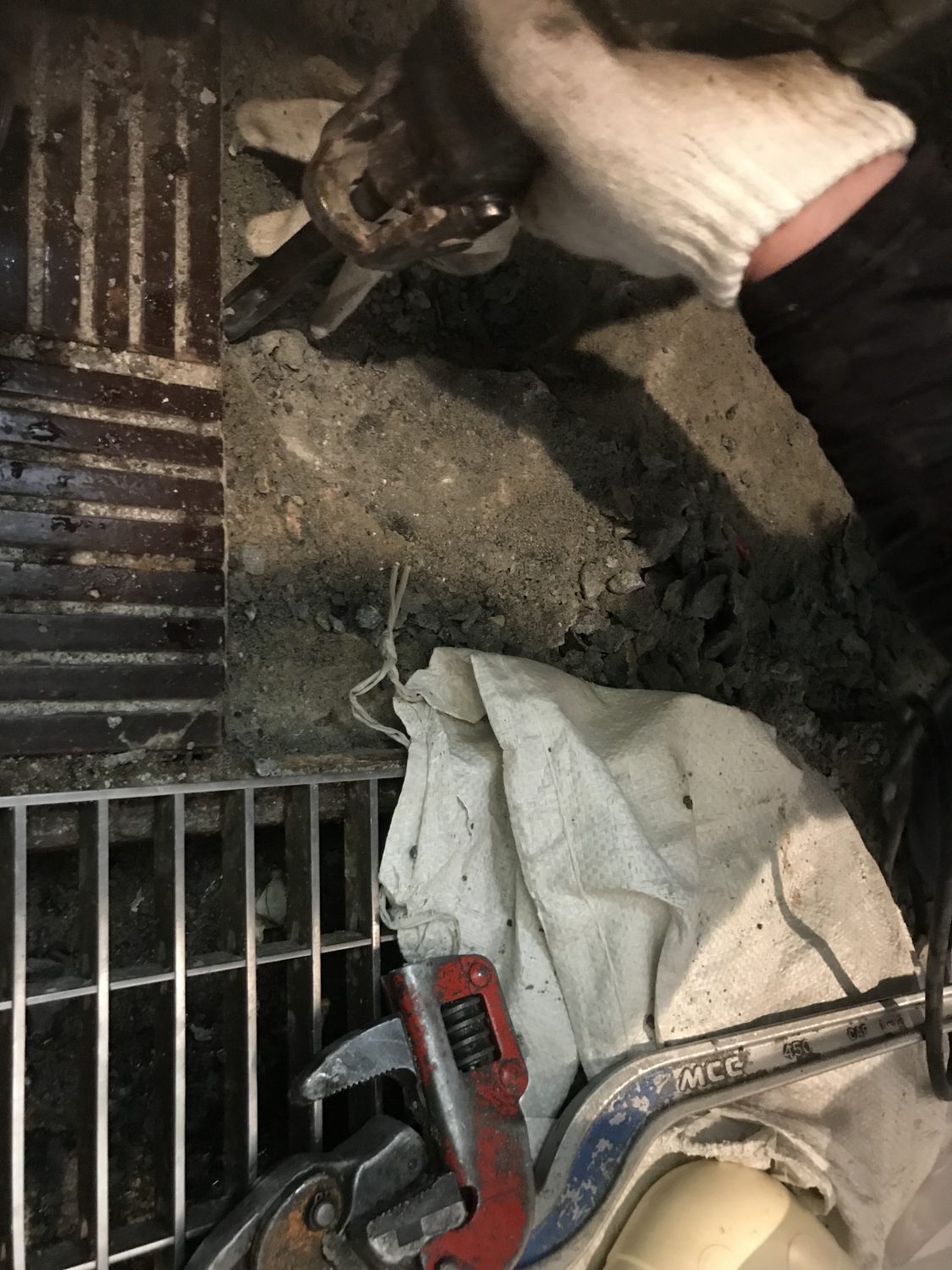 中央区にある某飲食店様にて、厨房の足元のガス管が劣化し、ガス漏れしているとの事から、ガス屋さんとの協力作業としてハツリ等を行いました!