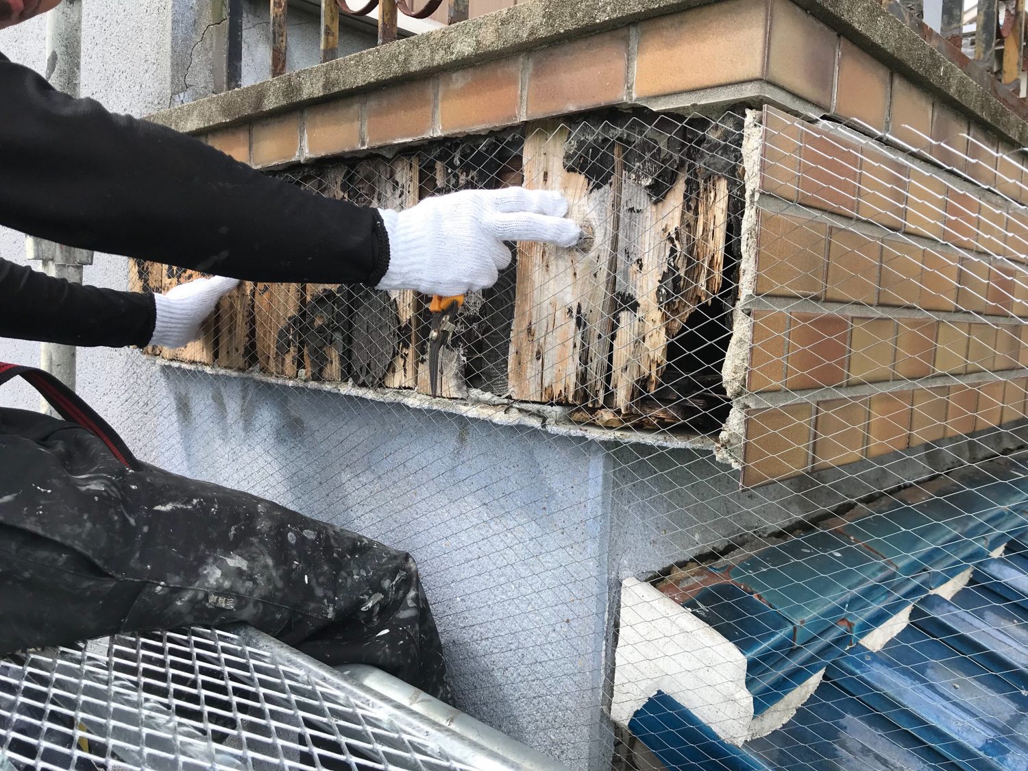 【ラス貼り付け】 モルタルをつける地枠(金網)を作っています