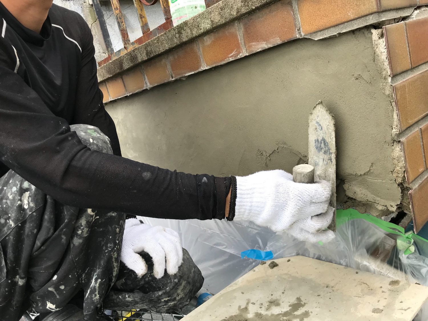 今回はモルタル整形作業までで、後日モルタル乾燥後タイル屋さんが新しいタイルを貼り戻して完成です。