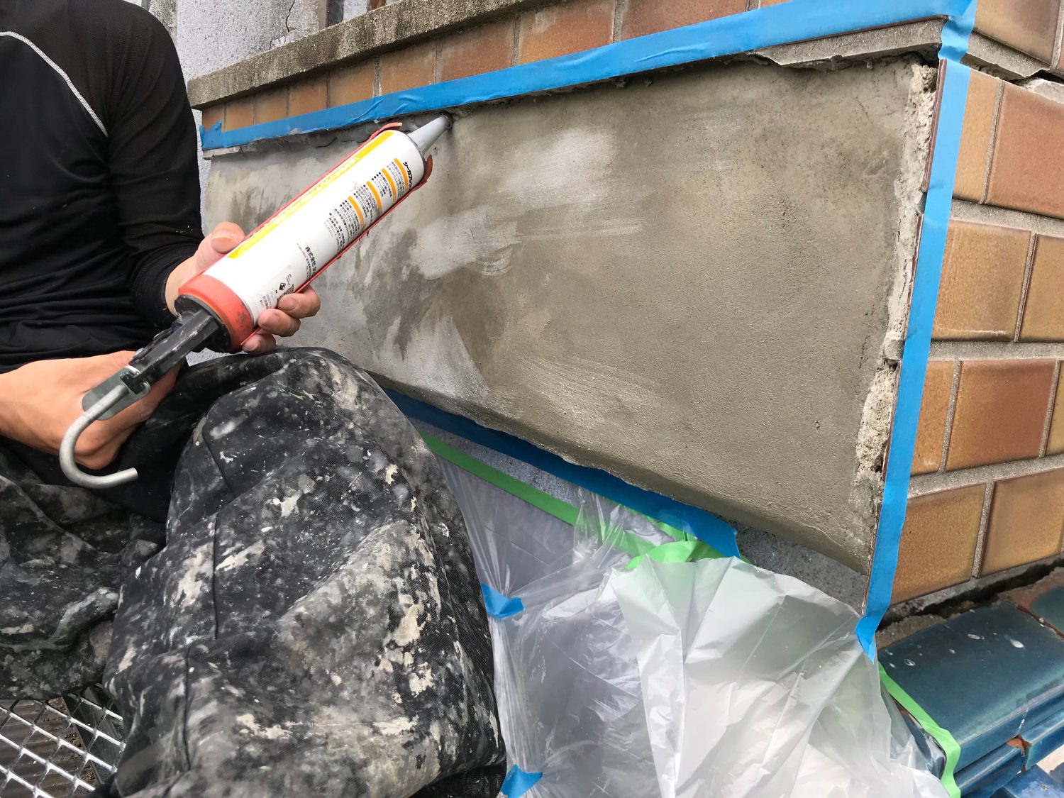 【シール底打ち】清掃、プライマー塗布後、シーリングにて防水処置します。