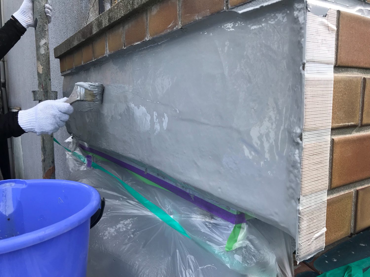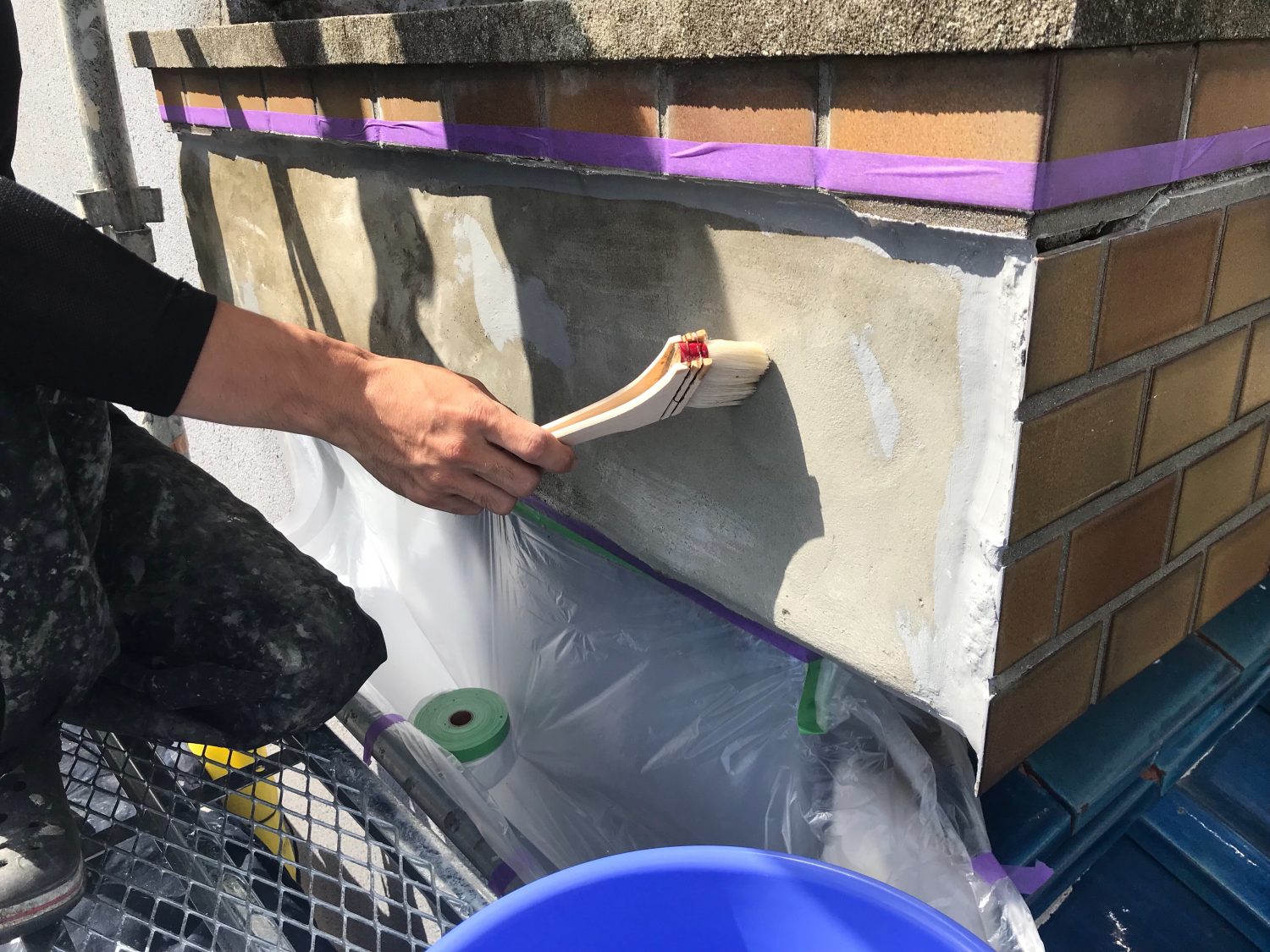 【プライマー塗布】防水材の接着剤を塗布しています。