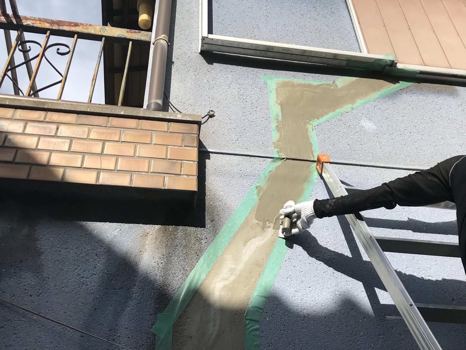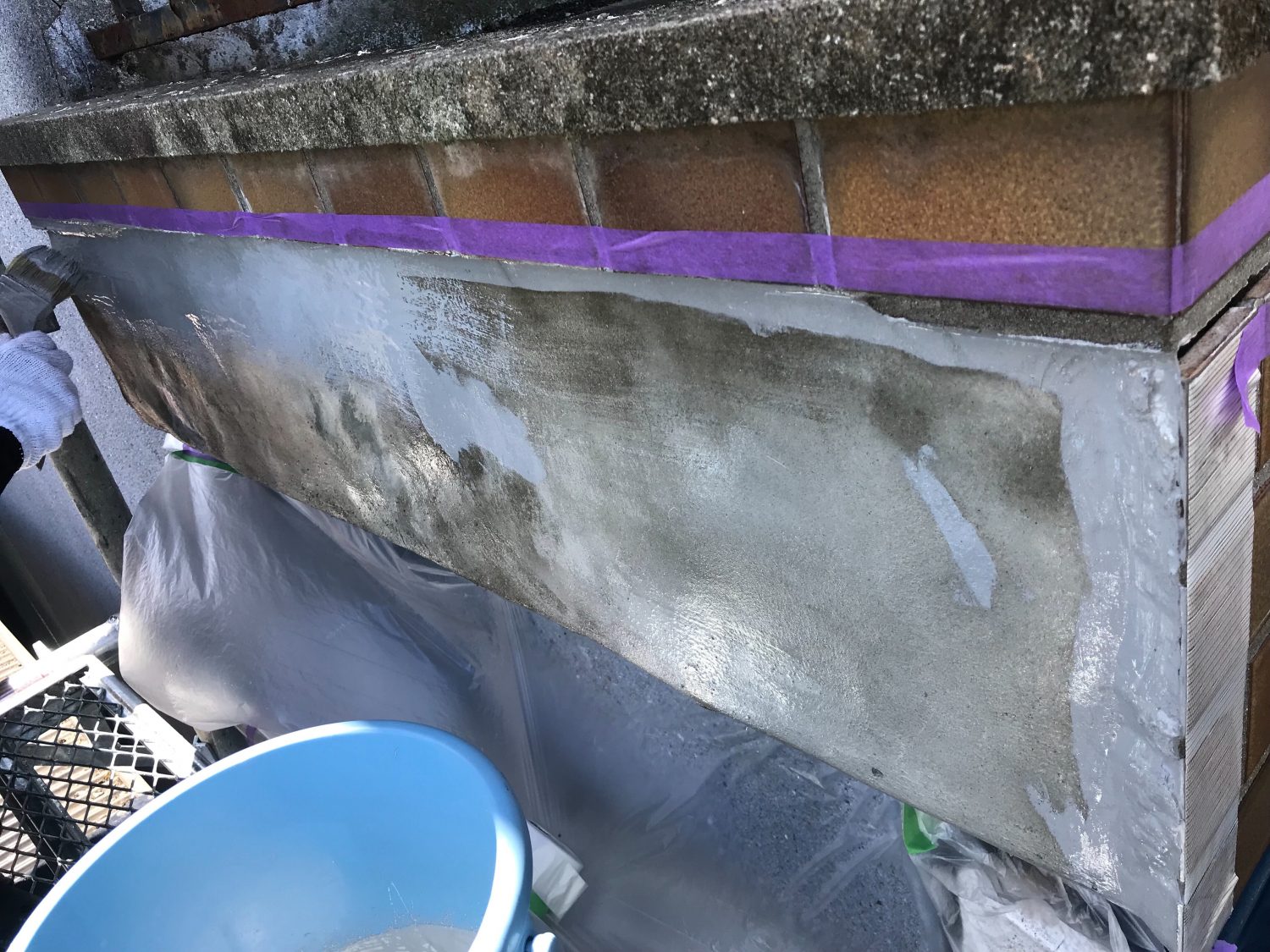 大阪市住吉区W様邸にてバルコニー鼻先、外壁部分補修のご依頼を頂きました。